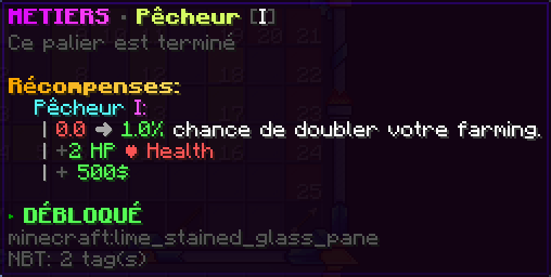 En pêchant à l'étang du spawn ou dans la zone farming, vous aurez des poissons spéciaux. Ils montent les collections et chaque pêche rapporte 100 d'expérience.